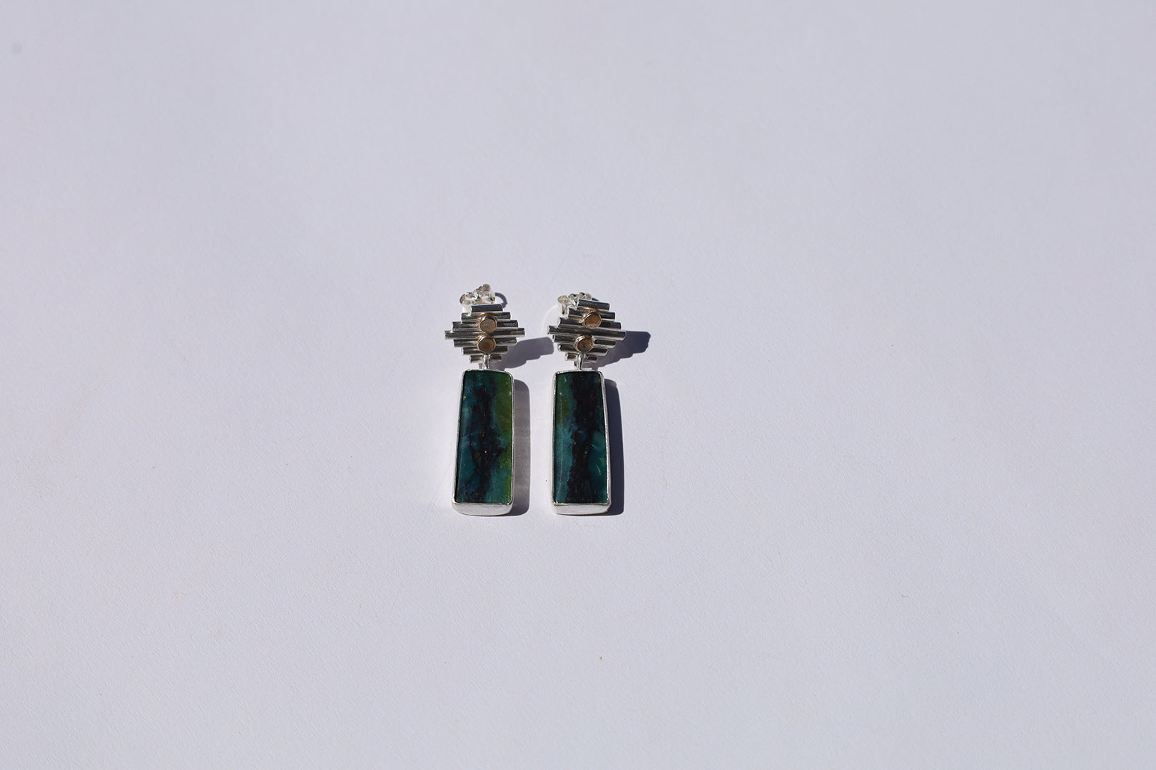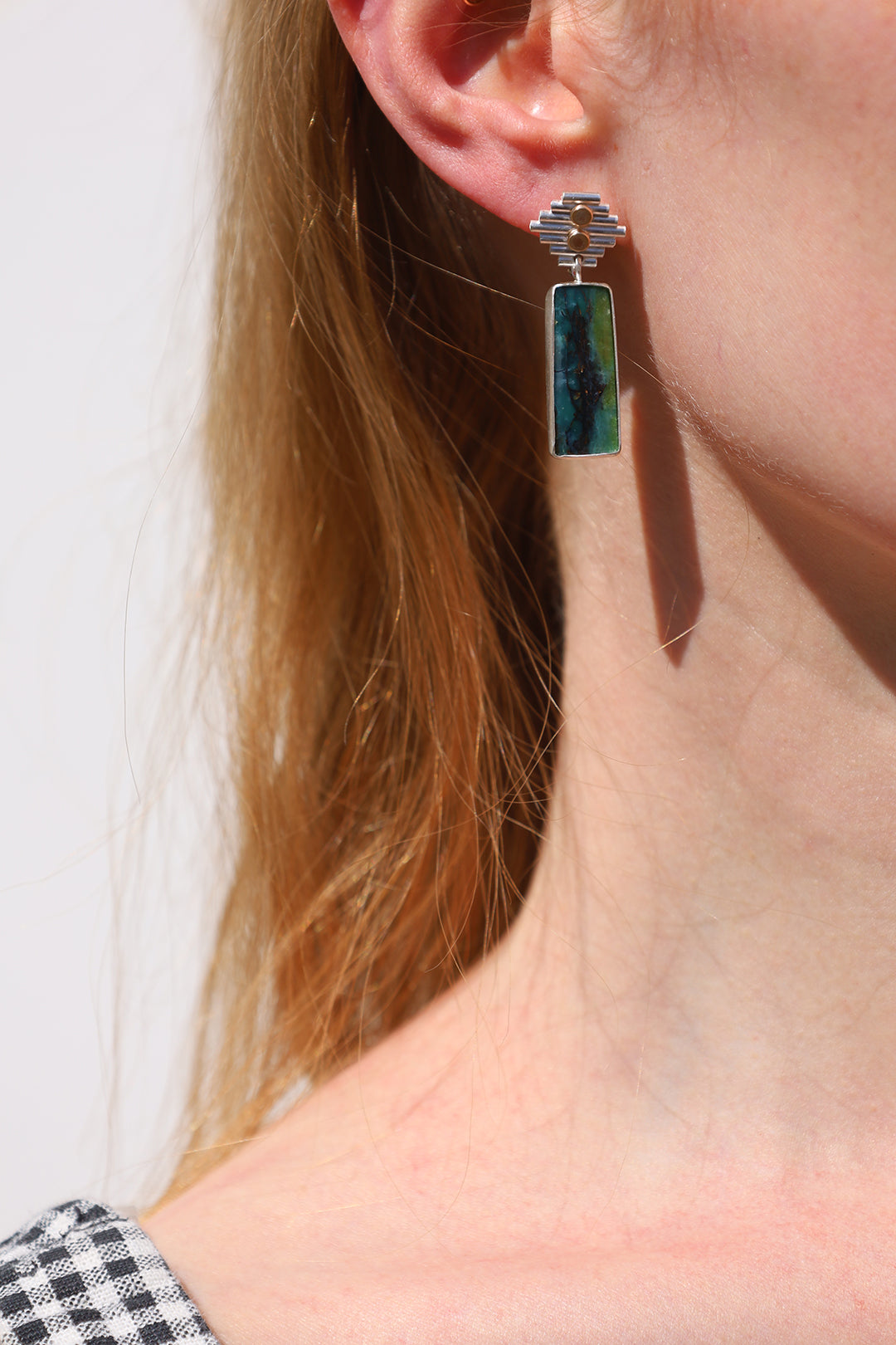 Sterling silver + 14k gold filled studs set with opal wood.