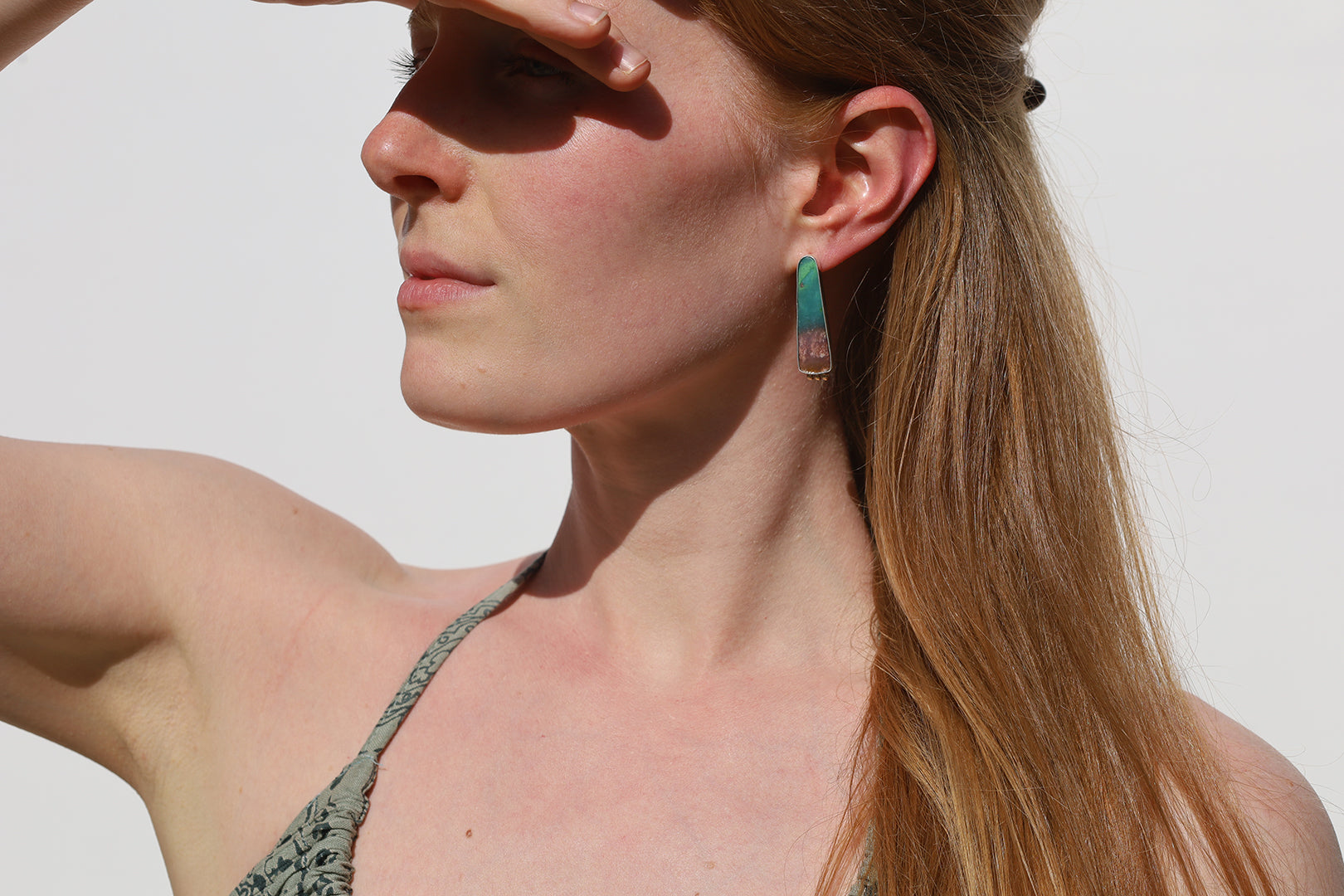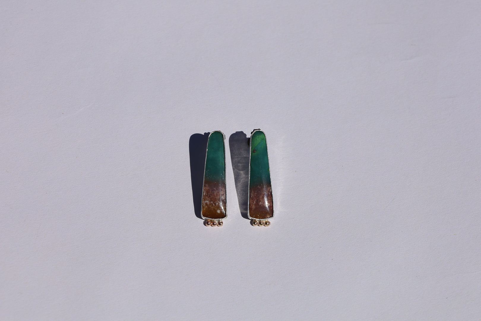 Sterling silver + 14k gold filled earrings set with opal wood.
