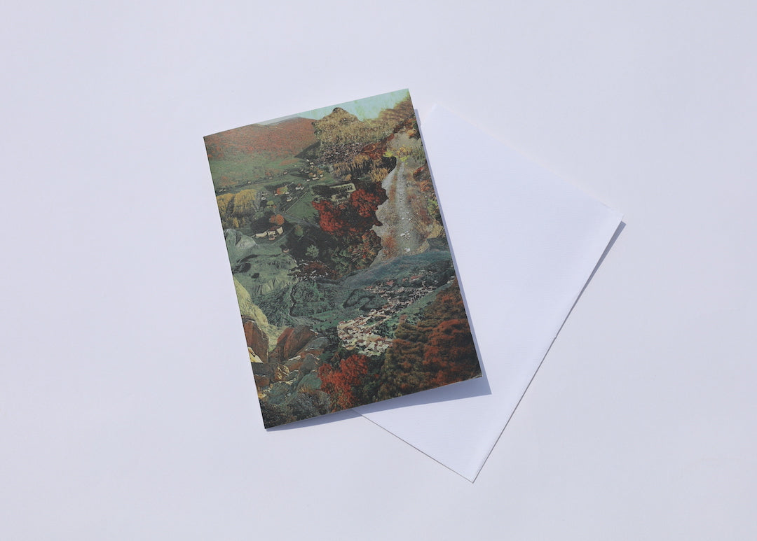 Blank, all occasion 5x7 greeting cards printed from original hand-cut collages. Includes white envelope.