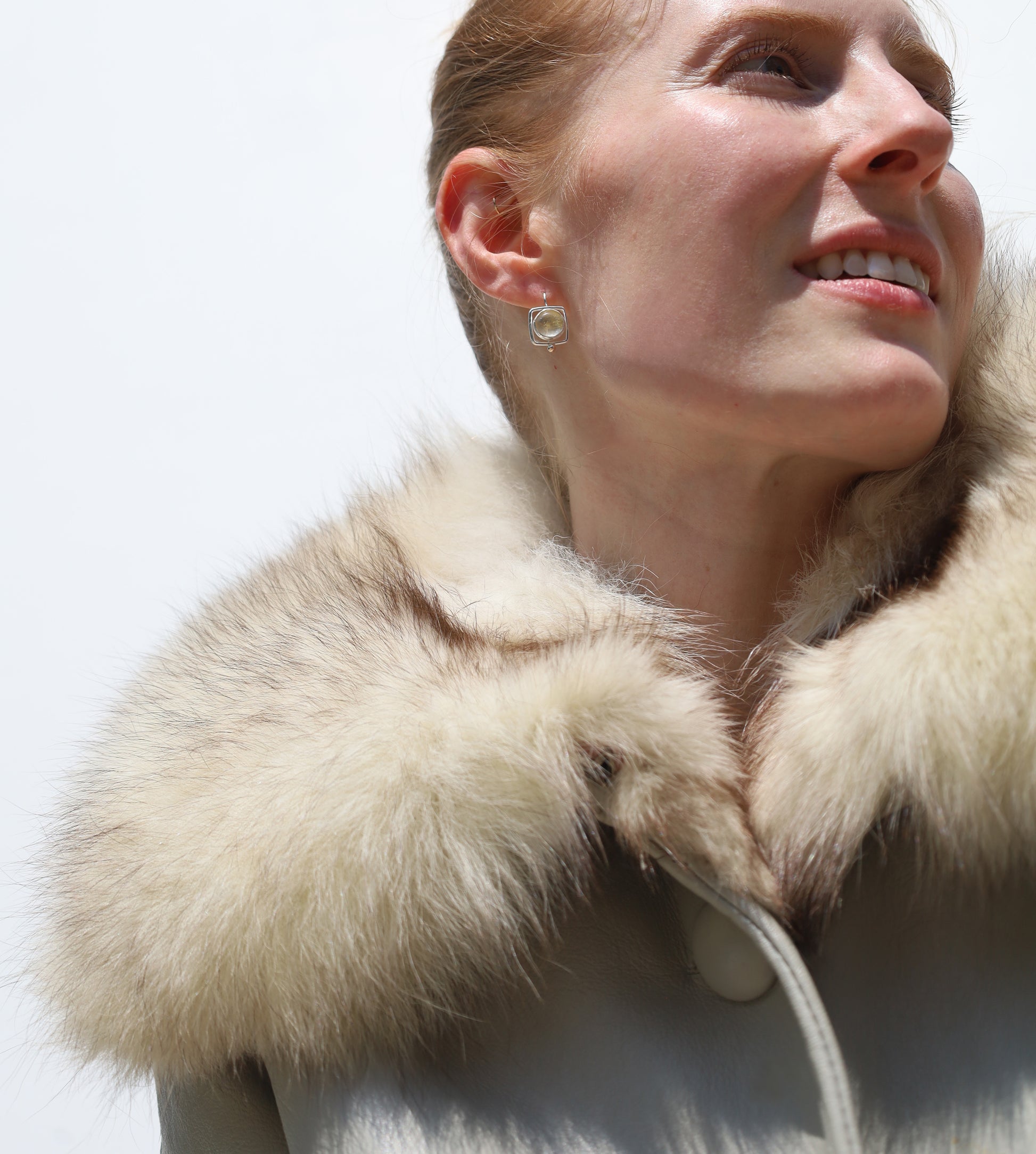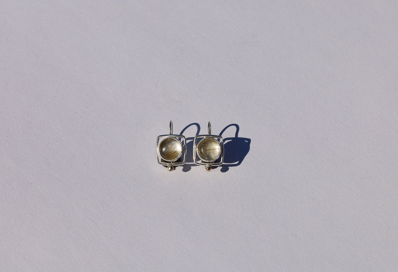 Sterling silver dangles set with rutilated quartz.