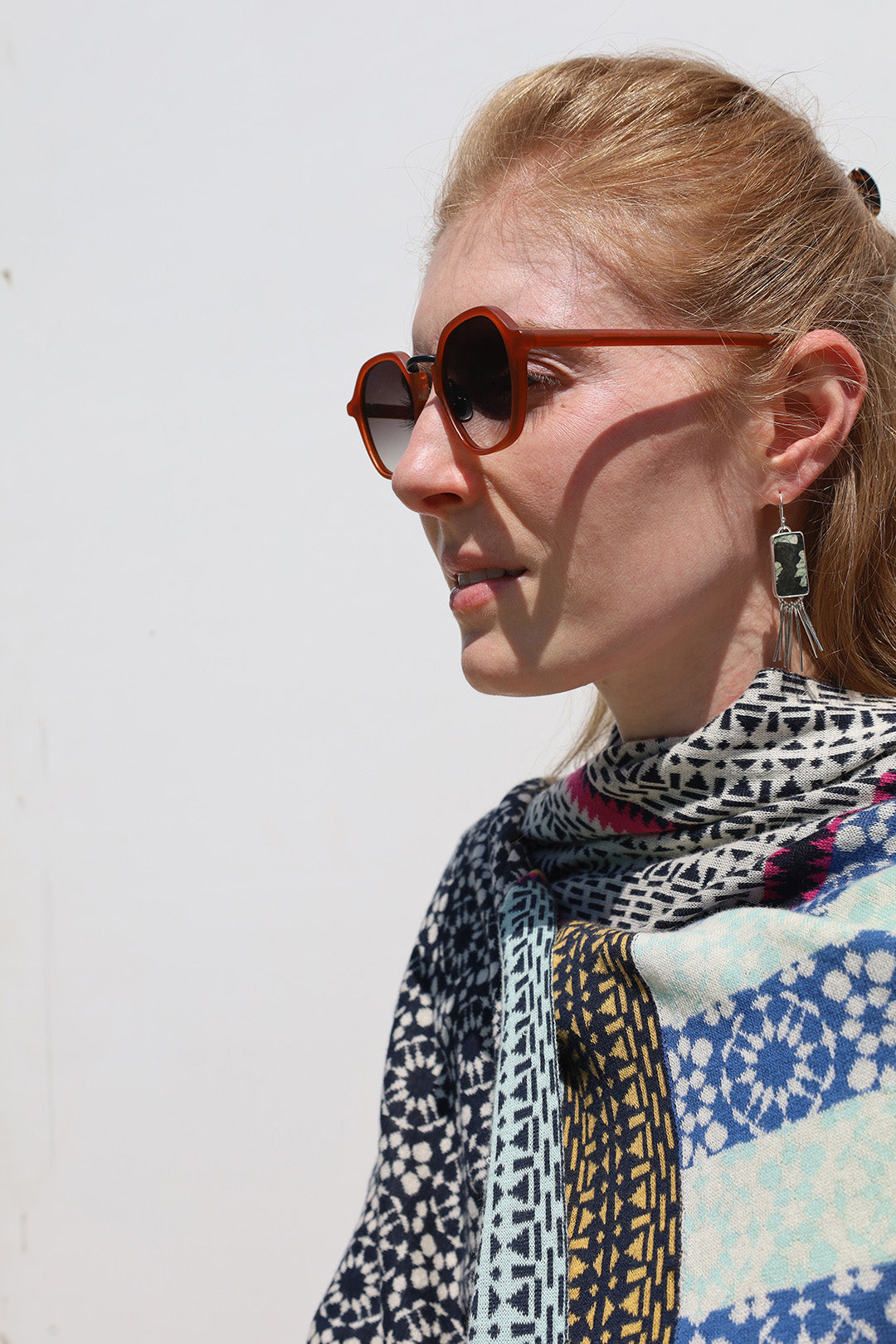 Sterling silver earrings set with Chinese writing gemstones.