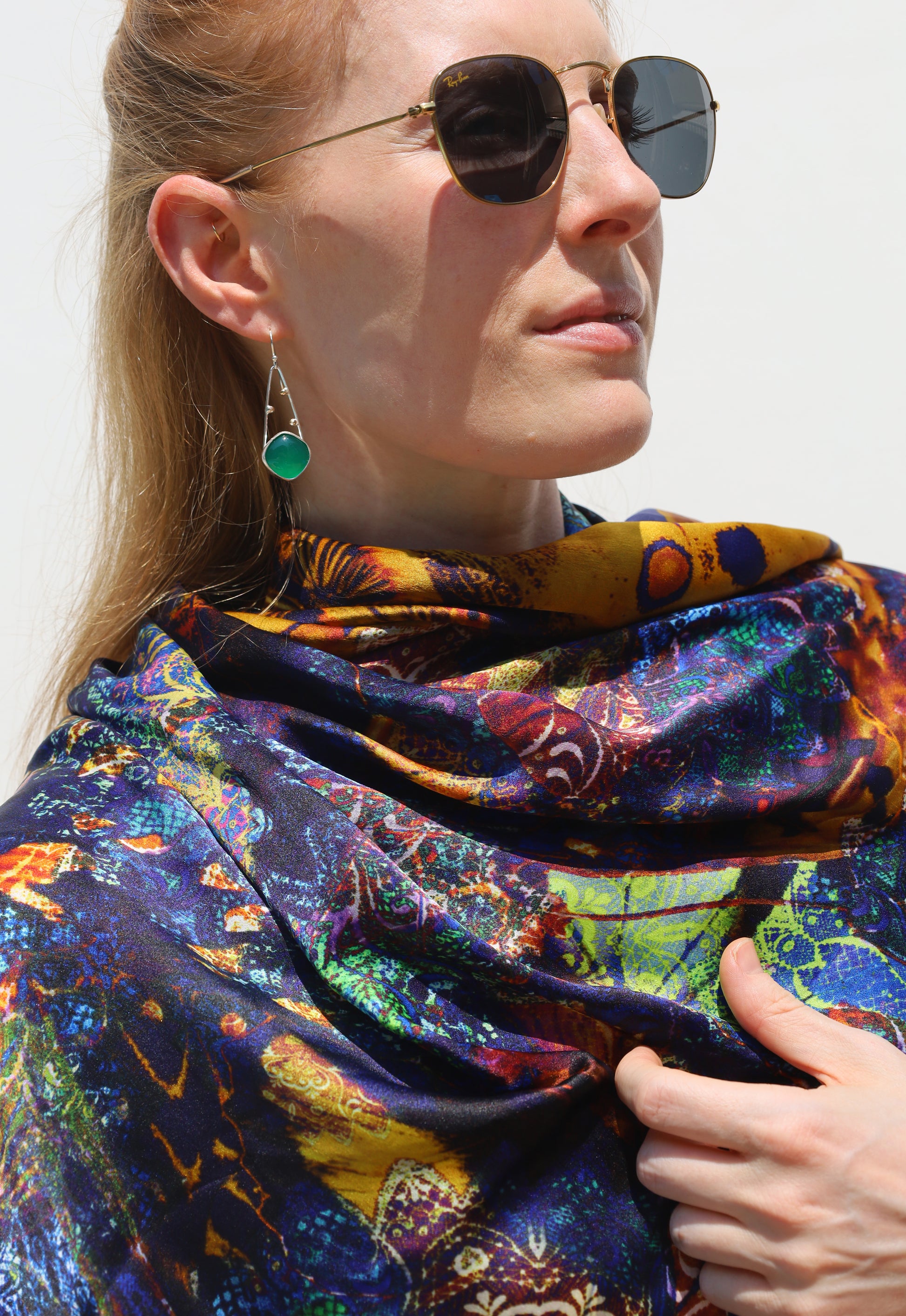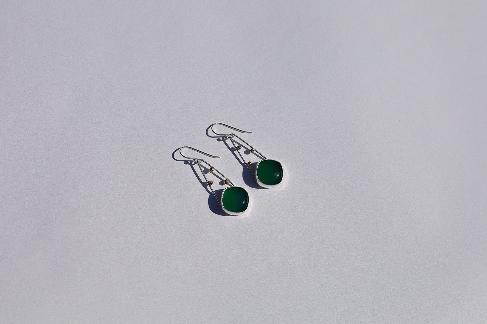 Sterling silver + 14k gold filled earrings set with green onyx.