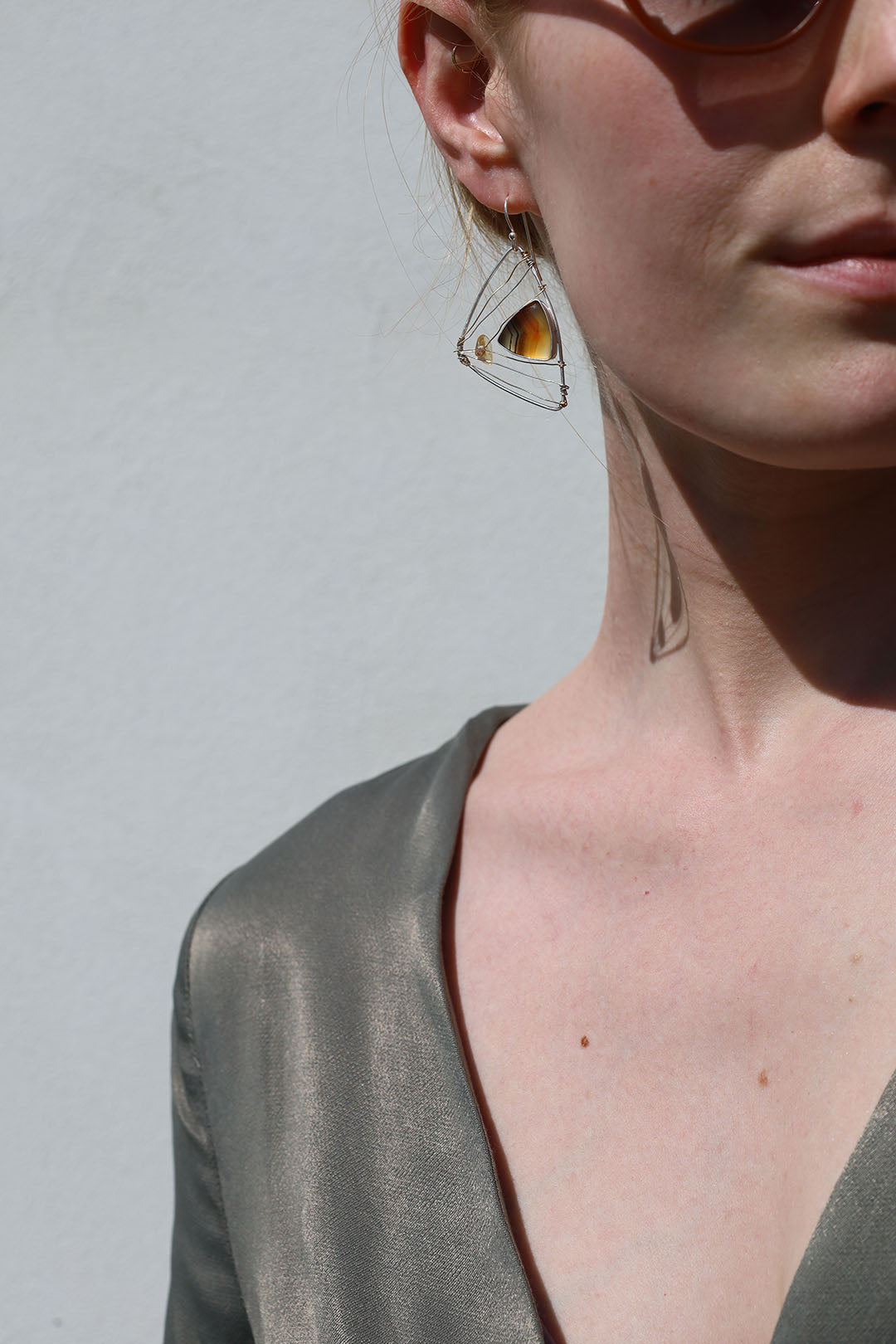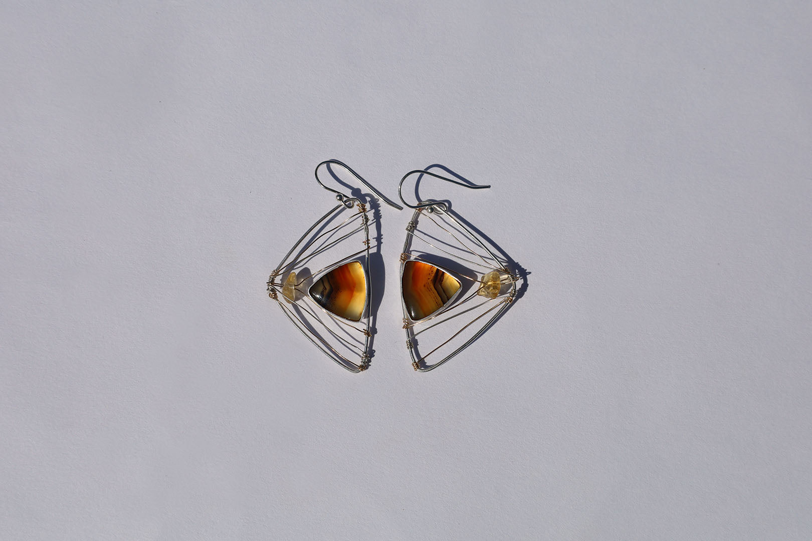 Sterling silver earrings set with Montana agate, citrine + gold filled wire.