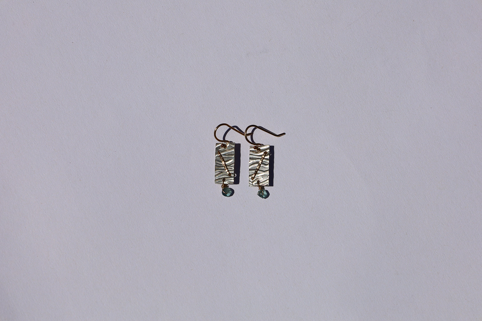 Textured sterling silver + 14k gold filled earrings with aventurine.